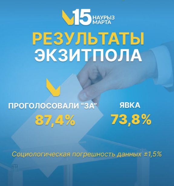 15 марта 2026 года, в день проведения республиканского референдума по принятию новой Конституции, специалисты “Социс-А” провели предварительный подсчет результатов волеизъявления граждан по методике “exit poll” на выходе из 200 участков для голосования.