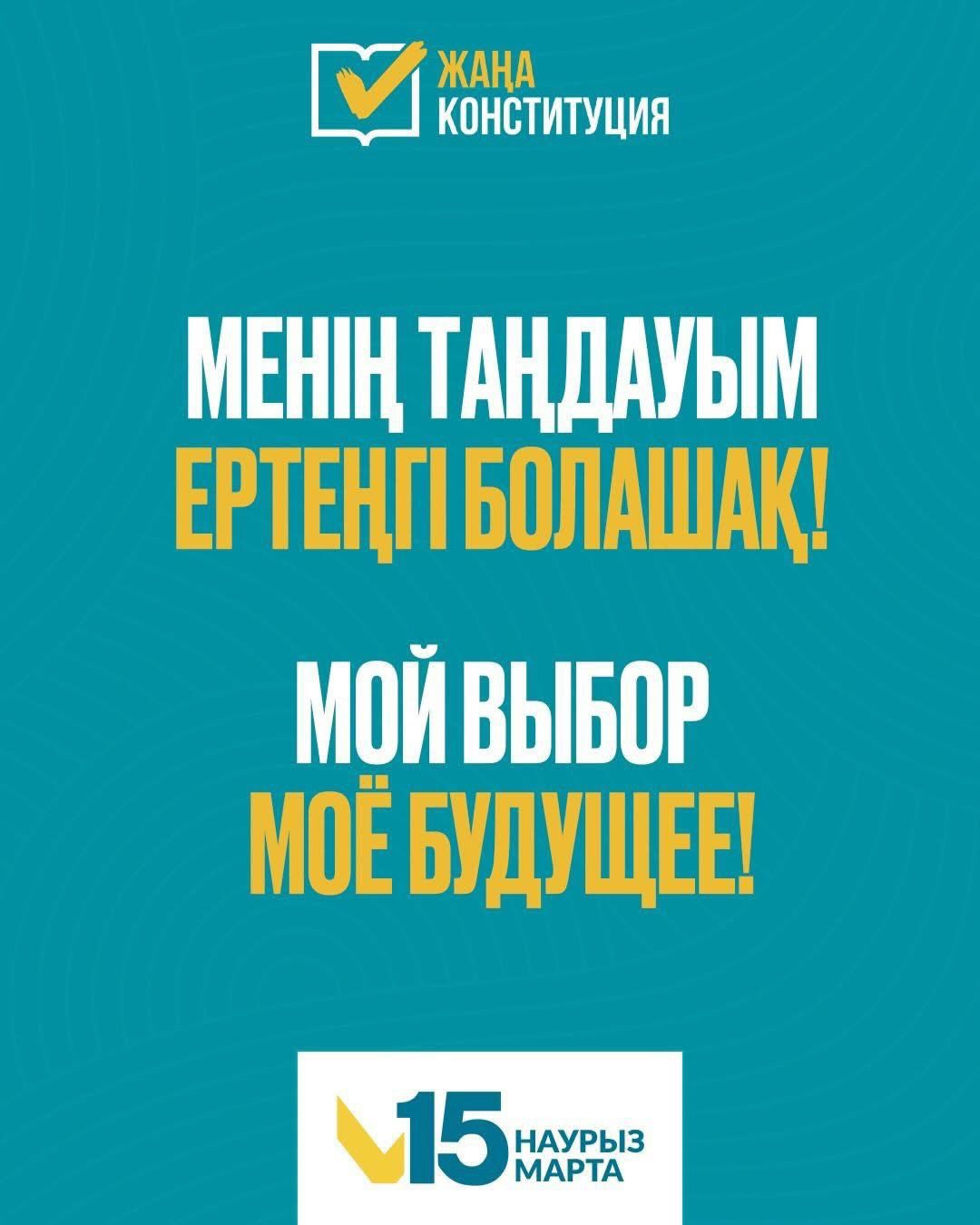 Жаңа Ата Заңымыз – мемлекетіміздің болашақ дамуына, биліктің халық алдындағы жауапкершілігін арттыруға және заң үстемдігі мен ел тұрақтылығын қамтамасыз етуге бағытталған өте маңызды қадам. Конституциялық реформалар билік тармақтарының тепе-теңдігін арттыруға, Парламенттің рөлін күшейтуге және мемлекетті басқарудағы жүйелілікті қамтамасыз етуге бағытталған. Бұл реформалар демократиялық талаптарға сәйкес Қазақстанның саяси жүйесін одан әрі жаңғыртуға үлкен септігін тигізеді, сондықтан ел тағдырына бейжай қарамайтын әрбір азаматты 15 наурызда өтетін референдумға келіп, өз таңдауын жасауға шақырамын!